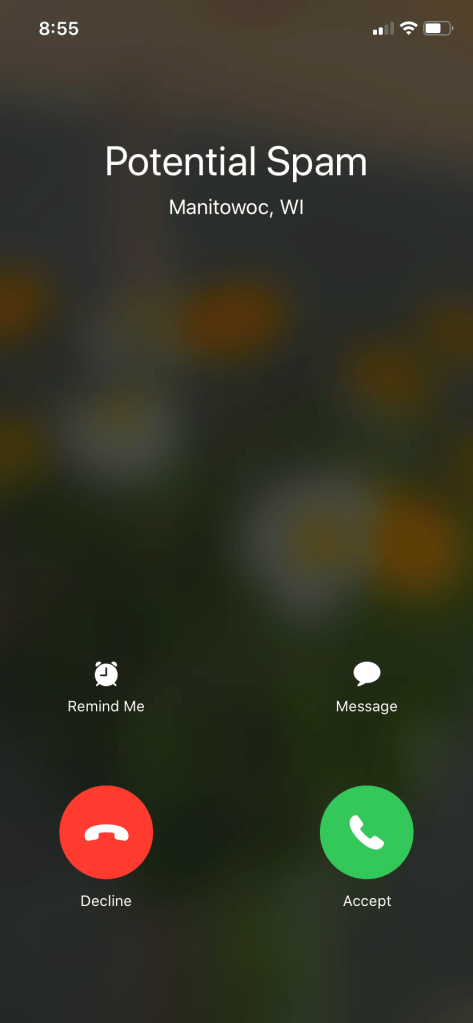 I was curious about the number and googled it; I found nothing. My iPhone eventually labeled it as “potential spam.” I wanted to answer it because I knew about Manitowoc, Wisconsin. I blogged about it in 2016.