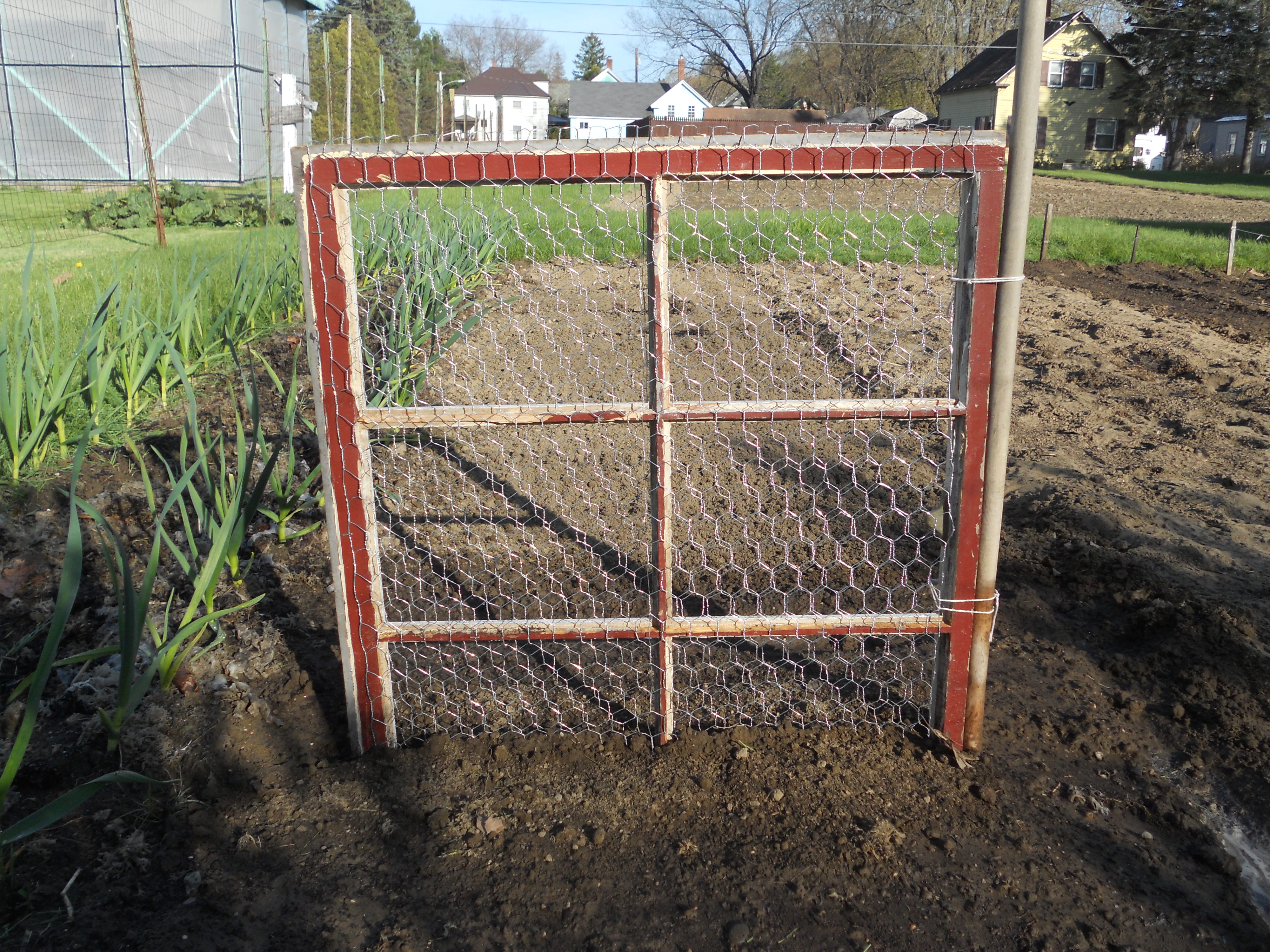 My father helped me by removing the glass and stapling the chicken wire on the frame. (Thanks, Dad!) Naturally, I had chicken wire here at the chicken coop-sized condo.