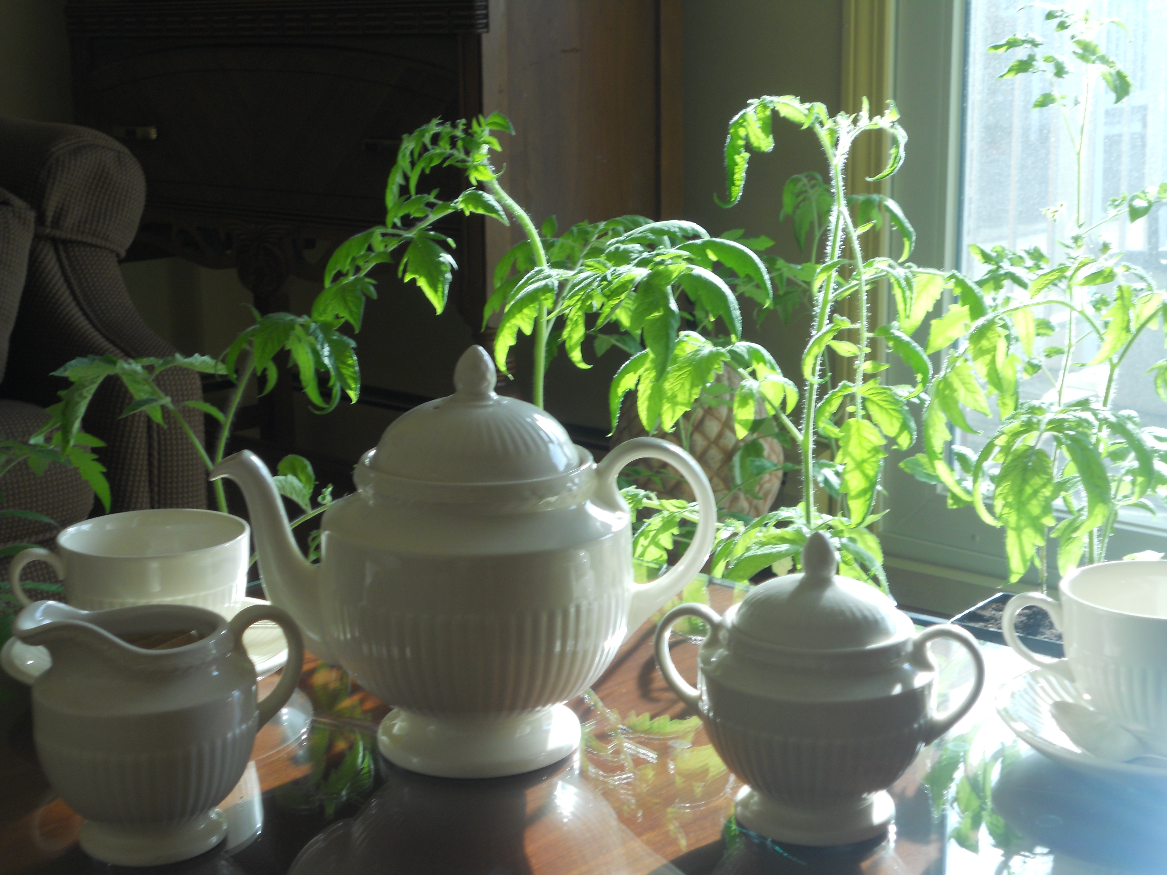 Then, there are my tomatoes. I have 30 tomato plants I started from seed in March. OF COURSE I started them too early! OF COURSE they’re getting tall and scraggly. “Leggy” is a word best used for supermodels, not tomatoes. The plants will be fine once I can plant them; I will bury a good part of their “legs” in the ground and no one will know they looked like circus freaks in their final weeks at the Coop. Still, I’m anxious to get them in the ground.