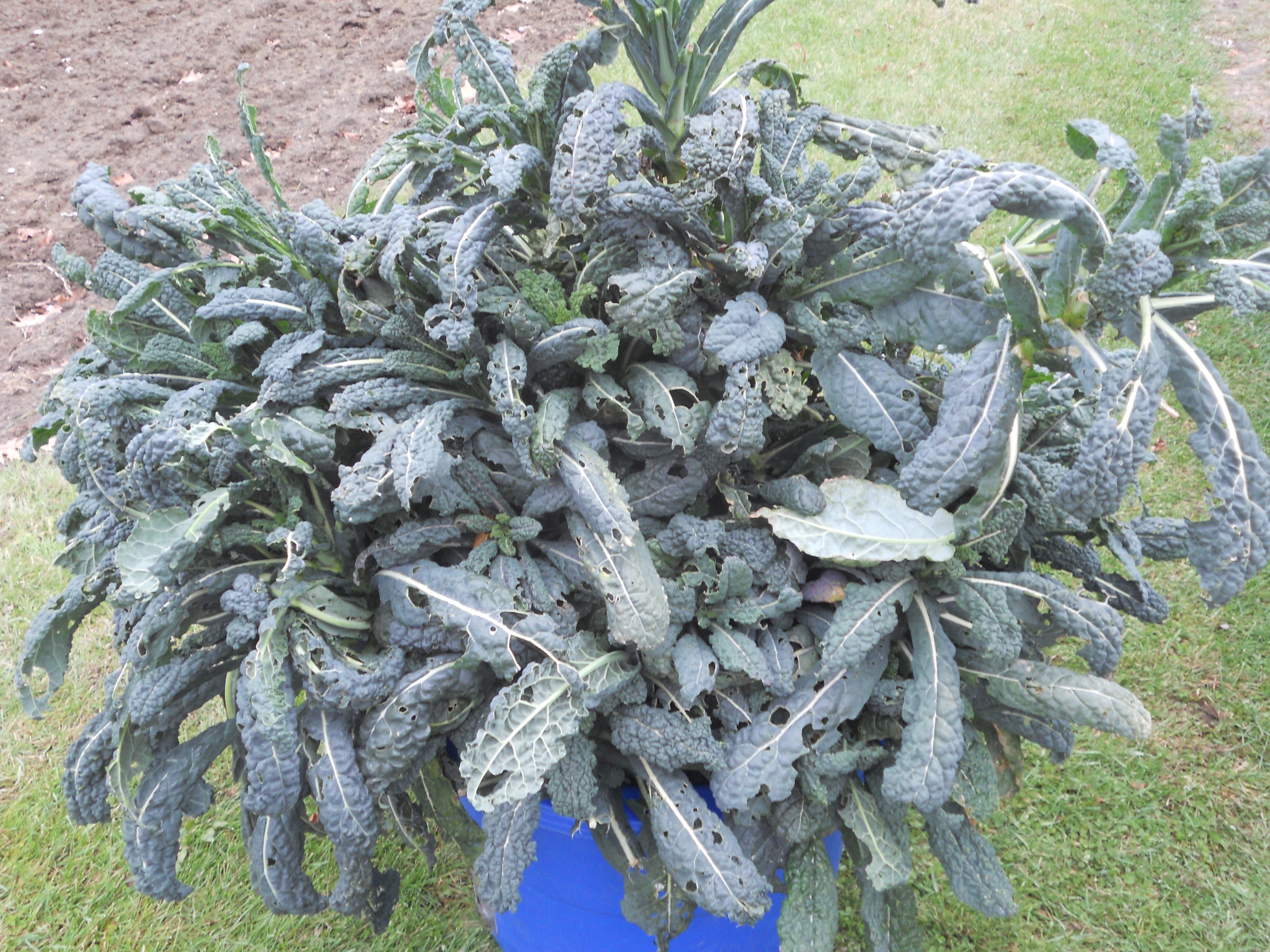 Here’s the dinosaur kale I pulled out of the garden. If I had been thinking, I would have wrapped a big red bow around the tub and used the picture as a holiday card.
