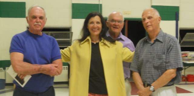 Left to right: Robert “Bobbie” Baumer, me and the Wonderful Worumbo coat, Herman “Hermie” Baumer, and Richard “Dickie” Moses (son of Worumbo Mill owner, Oliver Moses.)