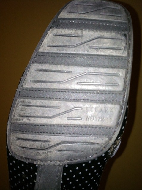 Don’t get me wrong; I love these little leather shoes. The soles have held me steady for hundreds of miles of walking around The Big Corporation and back and forth to Junior League meetings. They’ve worn well in the 6 years I’ve had them; a good pair of shoes should last at least 6 years. If I divide the cost of these shoes over the time I’ve worn them, they’ve cost me no more than a pair of discounted shoes at one of those big shoe buffets.