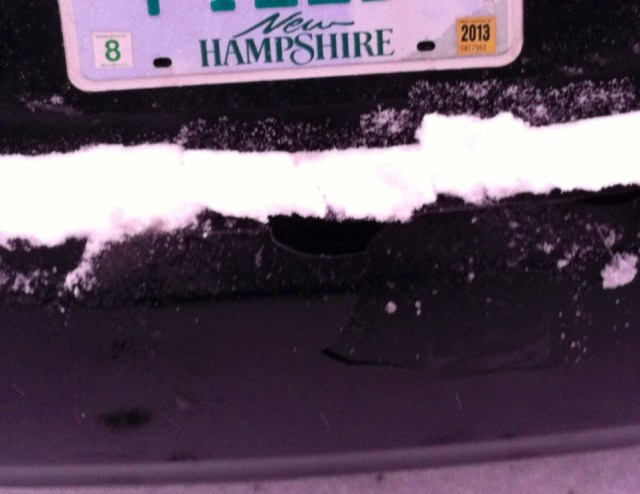 Unfortunately, with the snow covering the lines, I overcompensated how close I was to a smart and shiny car with a glass-like bumper and the inevitable “crunch” stopped me. Darn! I got out and predictably, the Jeep was fine but the other vehicle’s bumper was busted up a bit.