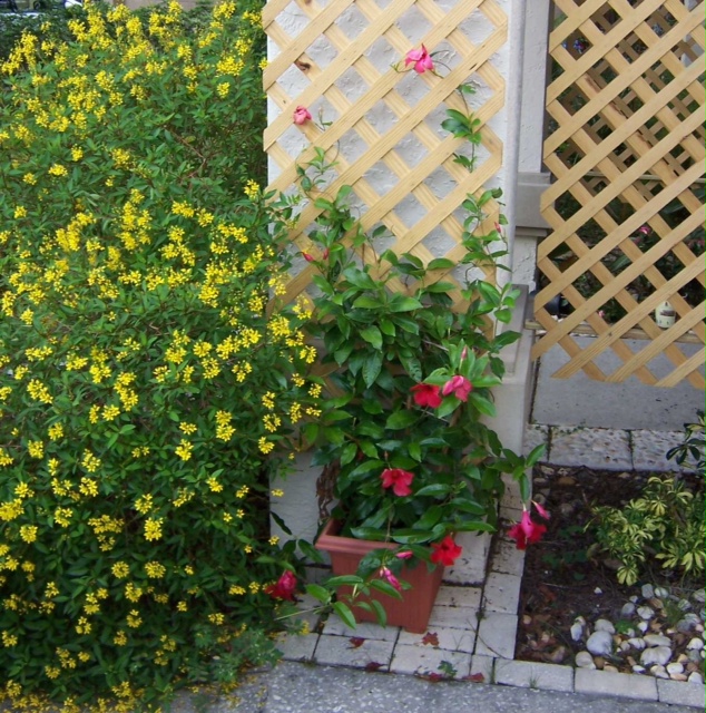 Since it’s “Tiny Steps Gardening Day,” I’m going to keep it simple. Reggie Black is a gardener and friend I’ve known since 1972. Although he asks Aunt Tomato a lot of questions, he’s a thoughtful student of the craft and he doesn’t need much help. He started out in England, growing herbs in pots. Now he’s puttering around his stateside house somewhere in Zone 9, experimenting with sweet potatoes, vines, and hugelkultur. He’s become the master of lattice as a gardening support device.