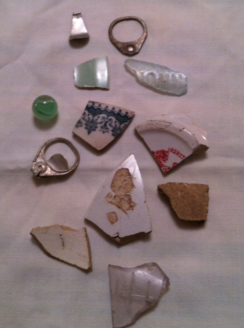 Sometimes, I dig up things in Uncle Bob’s garden. I’ve asked both he and my father if they remember ever burying garbage in the garden but they say this never happened. Still, whenever I dig up a little broken thing, I save it in a jar at The Coop.