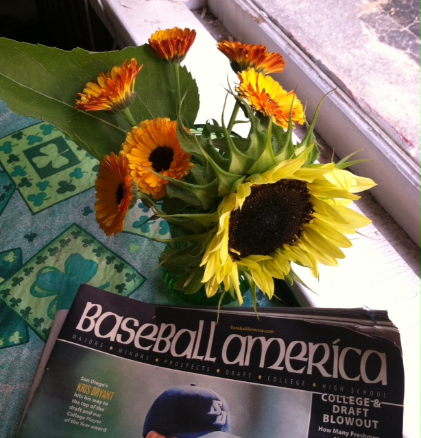 As I was arranging his flowers, I noticed he had a current issue of Baseball America on the table. The publication’s motto is “Baseball news you can’t find anywhere else.” Sometimes, I forget that Uncle Bob is a real person with passions and interests. He’s not just a character on my blog.
