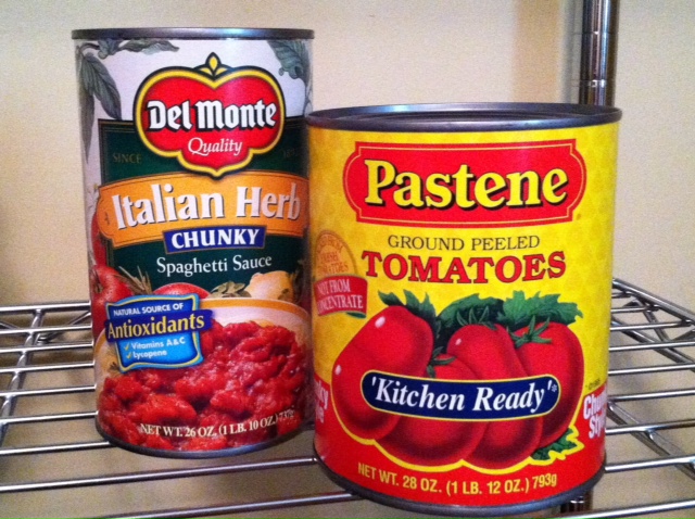 - Prepared Tomato Sauce (3 26 ounce cans).