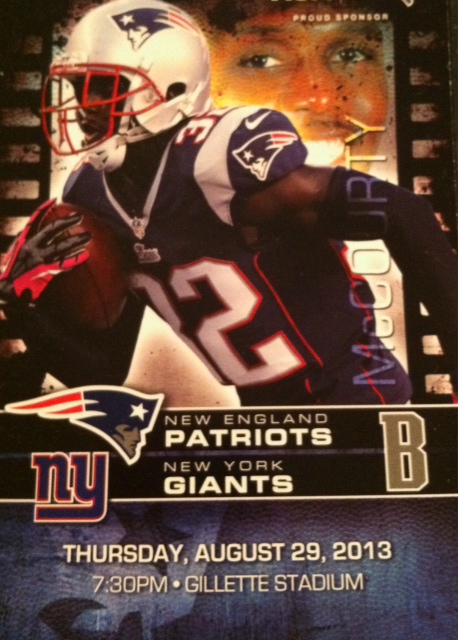 My friend Slim’s family has Patriots’ season tickets. She must know I’ve been in a sports funk lately because she offered me the tickets for tonight’s pre-season game.