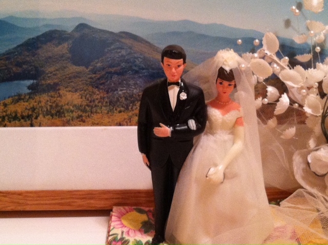 Speaking of which, remind me to tell you about the time I worked at a bridal boutique when I first moved to the Seacoast. Until then, I’m putting my small pile of wedding mementos in a small box with the cake topper.
