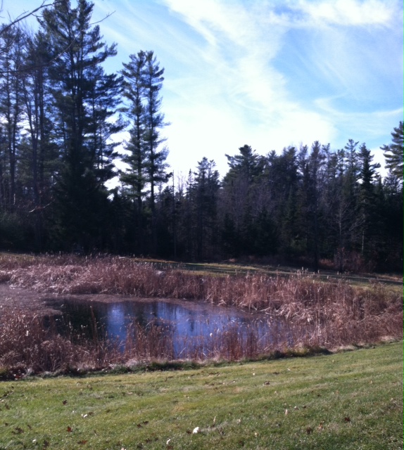 The pond is a good barometer of the weather. If it’s windy, I can see it on the pond’s surface and in the grasses surrounding it. I can see the rain drops. Lately, I’ve been able to tell how cold it is by the amount of the pond’s frozen surface.