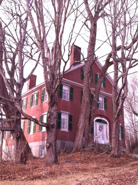 The weather being pleasant, I turned around and headed north up Head Tide Road, climbing a steep hill for about half a mile. No sidewalks, but since there were no frost heaves, no traffic, and no groundhogs, it was no problem. Halfway to the top of the road sat a stately brick home.