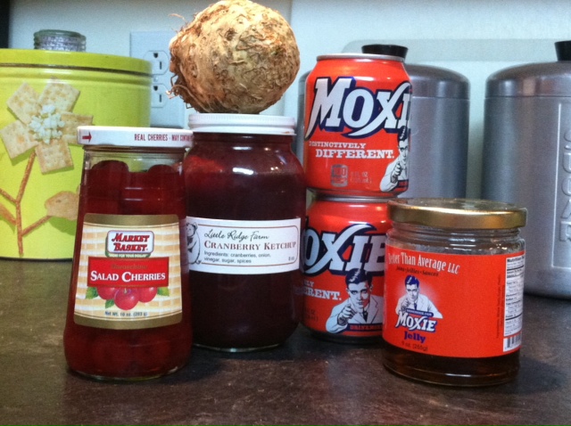 So here I sit at sunrise under my kitchen surgery light, testing half-baked ideas for the Moxie Recipe Contest with a toothpick. Thank goodness for my trusted advisors! But I need a few more suggestions. Are you a fan of Chopped? How would you adapt the show’s rules to the Moxie Recipe Contest? What ingredients (besides Moxie soda) would you require for the “basket?”