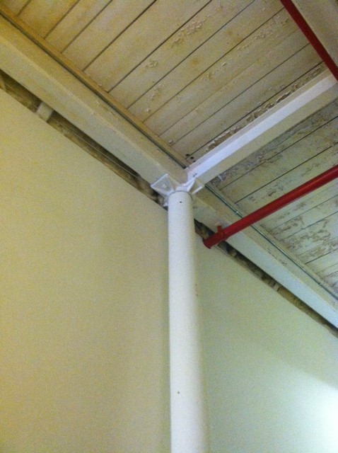 On Sunday, I went on a “walking tour” of Cabot Mill. Presented by the Pejepscot Historical Society, our tour guide was architectural historian Scott Hanson, who provided a twenty-minute slide show and lecture before leading approximately 50 of us through the mill. It’s always interesting to be a lady alone among 50 men and women who arrive in twos and threes. I didn’t note any other men or ladies alone; everyone seemed “grouped up.” Not one person spoke to me, which was absolutely fine because I was able to listen to them and all their silly conversations. There was a lady from Germany via New York City who had recently made a trip to Fort Fairfield, Maine, and lamented the barren, culture-less wasteland of “the County.” A man and woman about my age arrived with walking poles and pushed their way through the crowd to get the best views of things once the tour began.