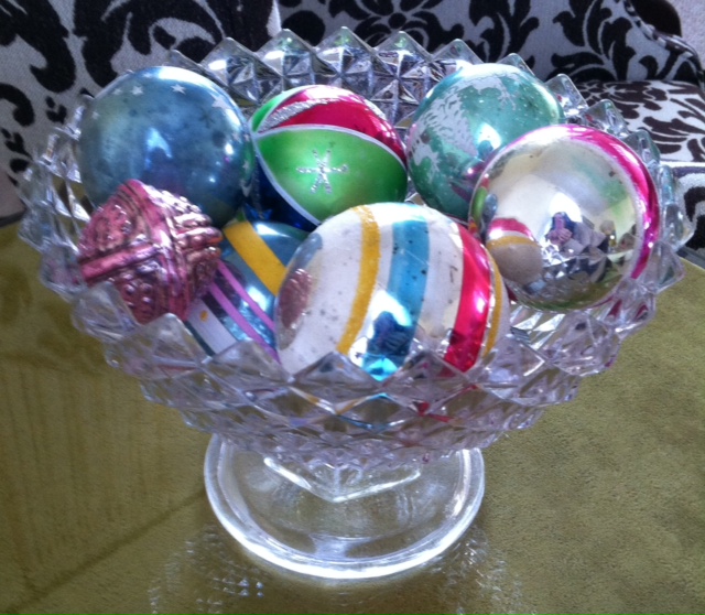 It’s too early for Christmas ornaments here at the house, but I wanted to share these fine vintage ornaments purchased at the Lisbon United Methodist Church Christmas fair last weekend.