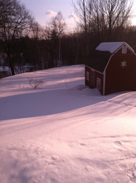 There was daylight enough to move some snow around on the west side of the house.