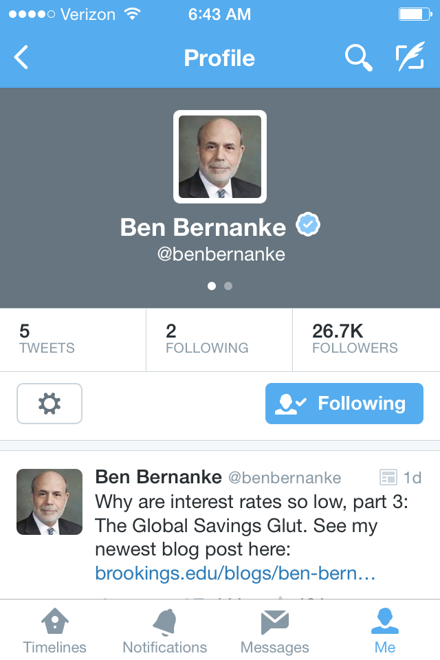 I’m not sure ole’ Ben can solve our economic ills via Twitter, but I like that he’s bullish on blogging.