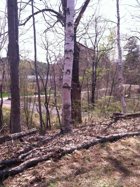 Me? I have decided I am incredibly out of shape from sitting all day; I’m somewhat ashamed that my soon to be 82-year-old father can outwork me. On Sunday morning, I managed to drag myself out of bed to finish moving the birch logs up the hill, cross fit style. On my father’s recommendation (“don’t lift that birch”) I used the pulp hook to move it end over end.