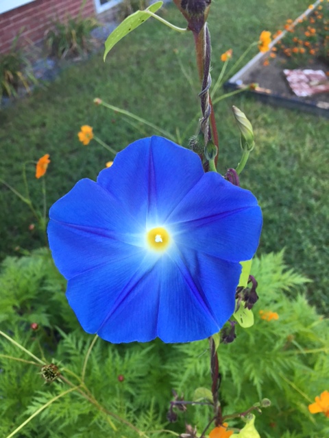 I planted “Heavenly Blue” morning glories this year and I waited eagerly for their arrival. I like the purple “Grandpa Ott’s” but the blue ones are my favorite.