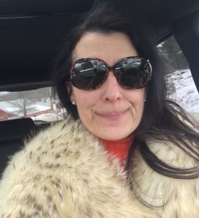We sprang forward today and I won’t bore you with links to past time change rants. The fix for today’s time torment was to get dressed up in sunglasses and a vintage fur coat for a trip to Market Basket before the snow flies.