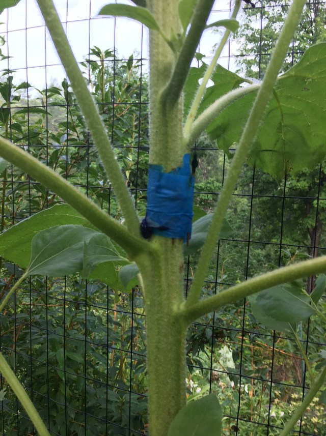 But others were. Rats with tails, as my father likes to call them. It was very dry earlier this summer and I think the squirrels were unable to get enough acorns out of the ground. They resorted to eating sunflowers. It makes sense, but unfortunately, they were too heavy for the stalks and they broke three in my garden. I was able to stake and restore all three of them.