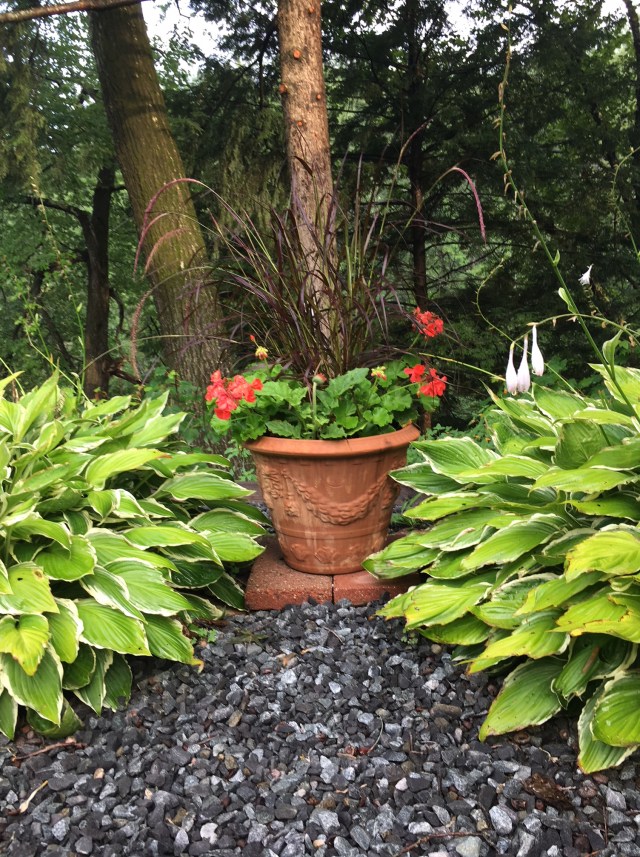 I love terracotta pots. I got this one and the one by the garage at Surry Gardens in Surry, Maine. Oh, such a wonderful greenhouse on the back road to Ellsworth. Go there and be filled with delight.