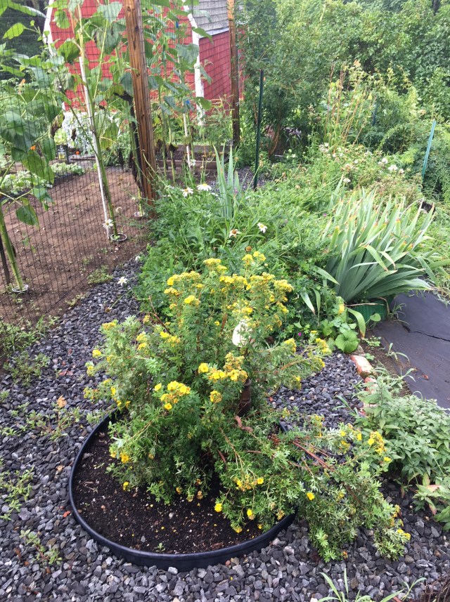 You’ll notice the pile of gravel stones; this will be the second summer I’ve had stone delivered and I use it for edging and other projects. Moving stone by hand is a wonderful work-out; better than cross fit.