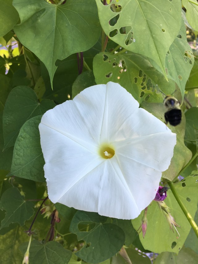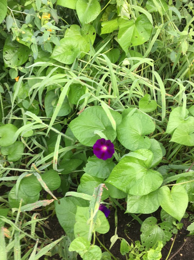 Here’s another Grandpa Ott, probably from last year’s garden cleanup. It’s growing from the gully area, where I throw my grass clippings, weeds, and spent flowers.