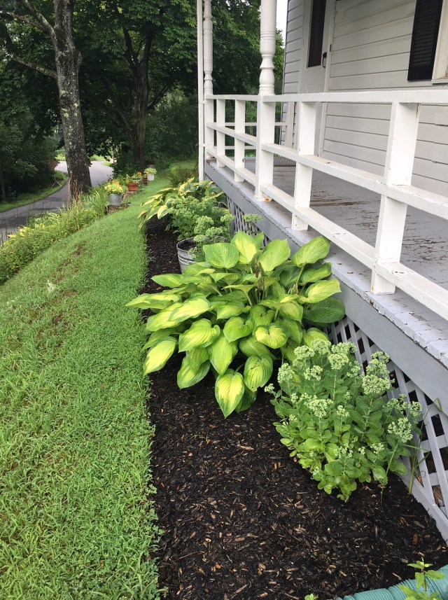 Careful on the banking next to the front porch garden! One day, after the porch restoration, I would like to get rid of the grass on that section of lawn. It’s difficult to mow and it’s ugly.